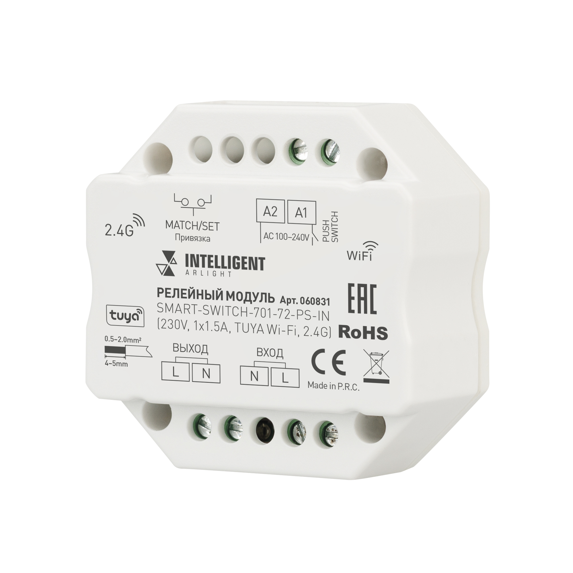 INTELLIGENT ARLIGHT Релейный модуль SMART-SWITCH-701-72-PS-IN (230V, 1x1.5A, TUYA Wi-Fi, 2.4G) (IARL, IP20 Пластик, 5 лет) 060831 в Новокузнецке