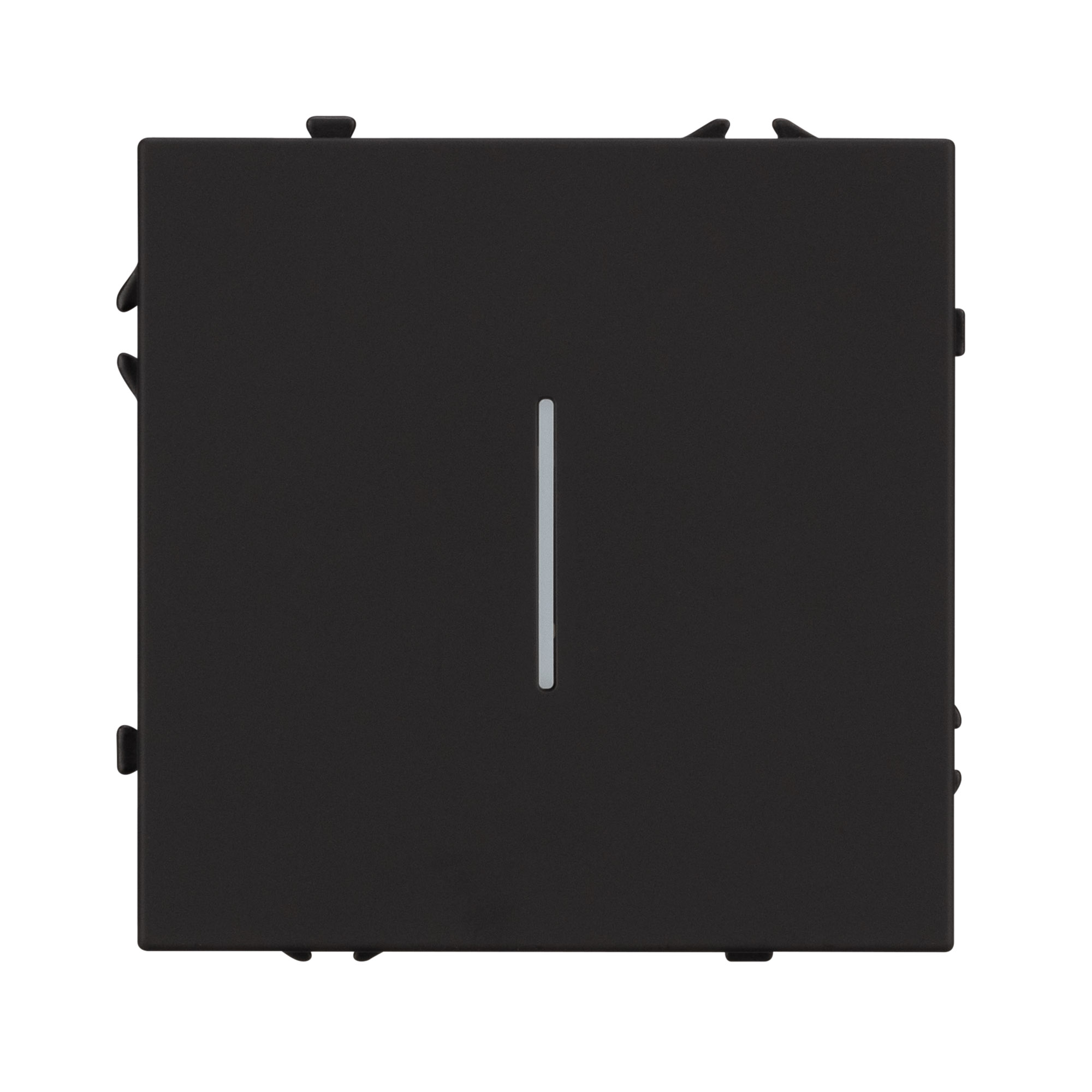 Механизм выключателя света клавишный на 1 пост 1 клавиша (непроходной). Цвет - черный, с Soft-Touch покрытием. Клавиша имеют активную LED подсветку - cинего свечения. Без фронтальной рамки. Уровень пылевлагозащиты IP20. Выключатель устанавливается в стандартный круглый подрозетник круглого сечения диаметром 60мм.