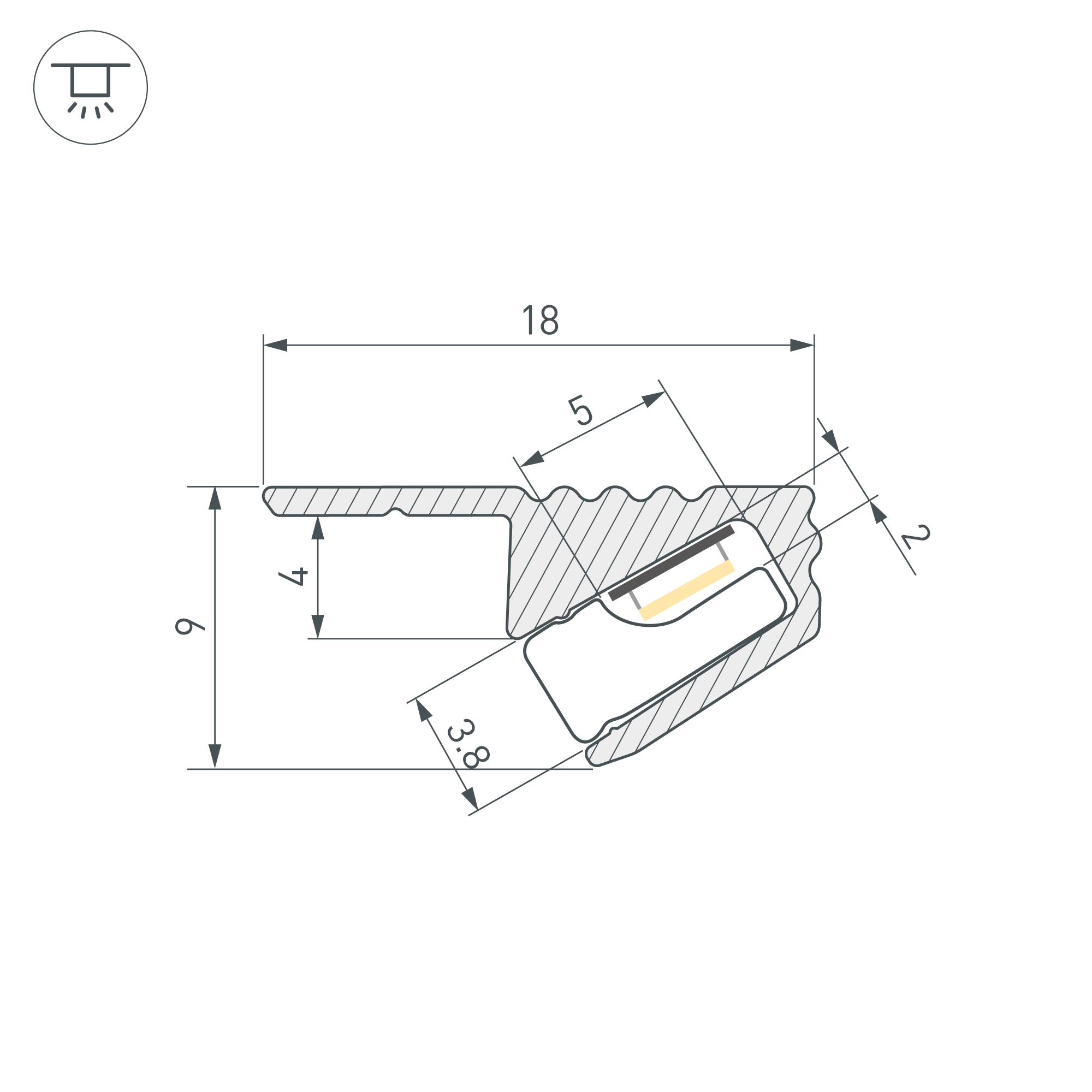 Алюминиевый анодированный профиль для светодиодных лент и линеек. Цвет - серо-оливковый. Габаритные размеры (L×W×H): 2000x18x9 мм. Ширина площадки для ленты 5 мм. Экраны и заглушки приобретаются отдельно. Цена за 1 метр.