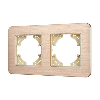 Рамка алюминиевая на 2 поста, под встраиваемый механизм. Цвет - золотой. Среднего уровня герметичности IP20. Ориентация монтажа - горизонтальная (основным ориентиром служат посадочные выступы для накладки механизма).