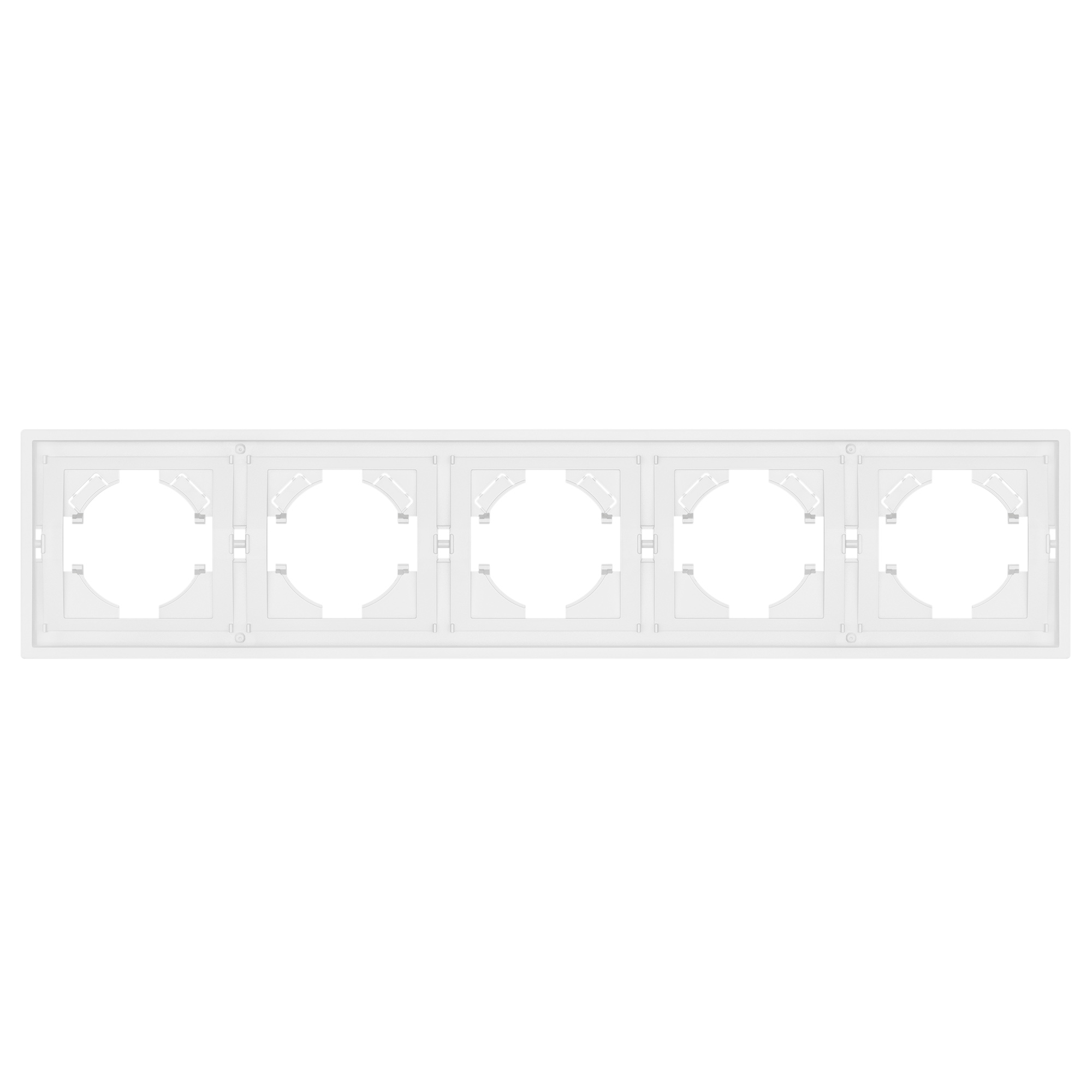 Рамка пластиковая на 5 постов, под встраиваемый механизм. Цвет - белый. Среднего уровня герметичности IP20. Ориентация монтажа горизонтальная.