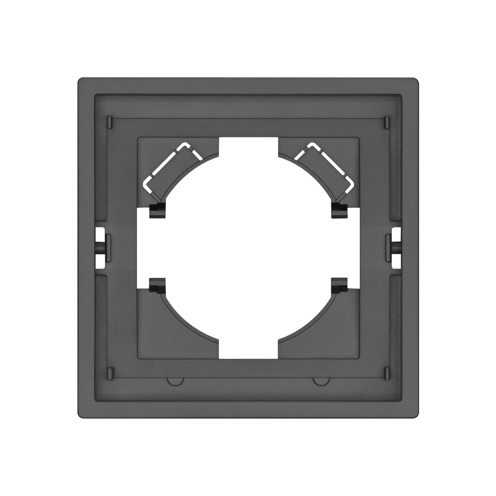 Рамка пластиковая на 1 пост, под встраиваемый механизм. Цвет - серый, с Soft-Touch покрытием. Среднего уровня герметичности IP20. Ориентация монтажа горизонтальная.