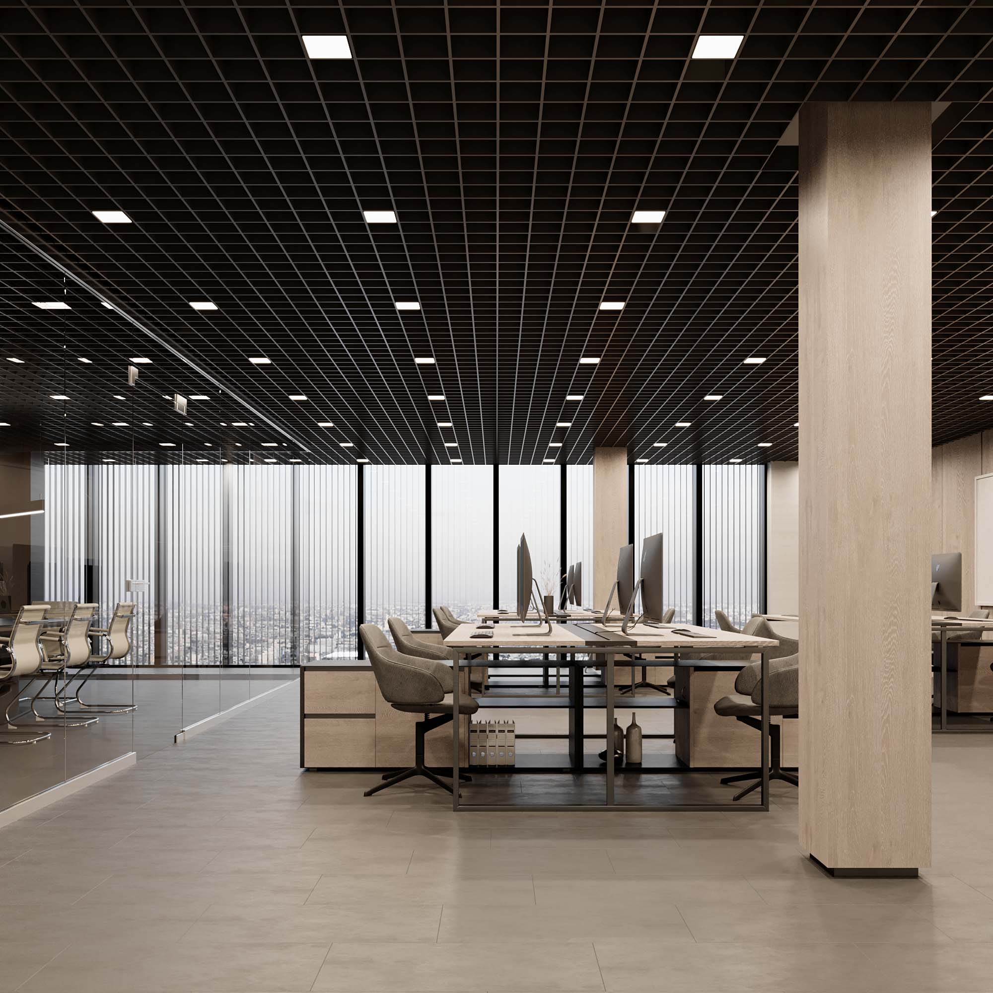 Встраиваемый светильник даунлайт для установки в потолки Грильято с размером ячейки 150х150 мм и высотой направляющих 30, 40 или 50 мм. Мощность 18 Вт, св. поток 1800 лм, 100 лм/Вт, дневной 4000 K, CRI>90, угол 100°, напряжение питания 230 В. Чёрный квадратный корпус из алюминия, степень защиты IP40. Размер: длина 140 мм, ширина 140 мм, высота 40 мм. Монтаж встраиваемый, установочное отверстие: длина 140 мм, ширина 140 мм. Драйвер 24-42 В, 450 мА, пульсация <1%.