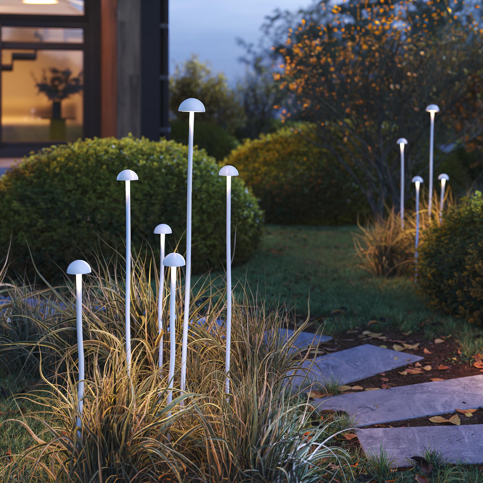 Уличный декоративный светодиодный светильник ENOKI предназначен для применения в ландшафтном и архитектурном освещении. Высокий индекс цветопередачи CRI>80 обеспечивает отличную передачу цветовых оттенков. Светодиодный модуль закрыт молочным рассеивателем, создавая мягкое свечение. Особо привлекательно светильники смотрятся в группе из нескольких светильников, разных высот. Основание светильника выполнено из алюминия белого цвета. Корпус имеет высокую степень защиты от проникновения пыли и влаги на уровне IP65. Монтаж выполняется в грунт с помощью основания пика, входящего в комплект. Напряжение питания 24 В. Драйвер приобретается отдельно.