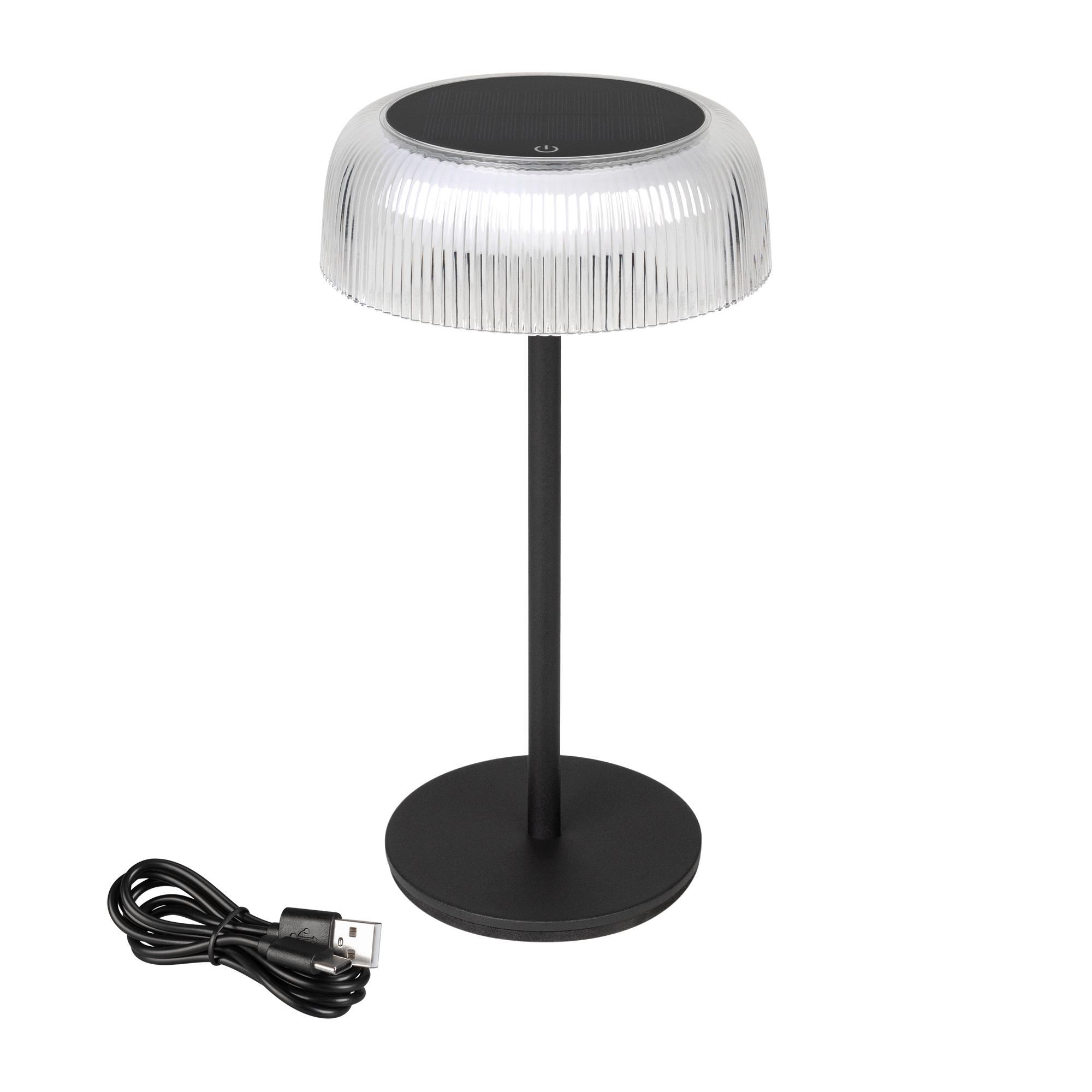 Настольный светильник со встроенным аккумулятором мощностью 4.7Вт, черный металлический корпус. Цвет теплый белый 2700К, св.поток 114 лм, CRI(Ra)>85, угол 130°. Размер ø151x270мм, диаметр основания Ø110. IP54. Тип встроенного аккумулятора 2000мАч, напряжение батареи DC3.7V. Солнечная батарея 0,9 Вт